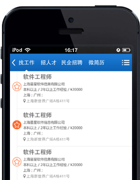 精準(zhǔn)定位,讓您走到哪,都能隨時(shí)發(fā)現(xiàn)身邊的好工作。